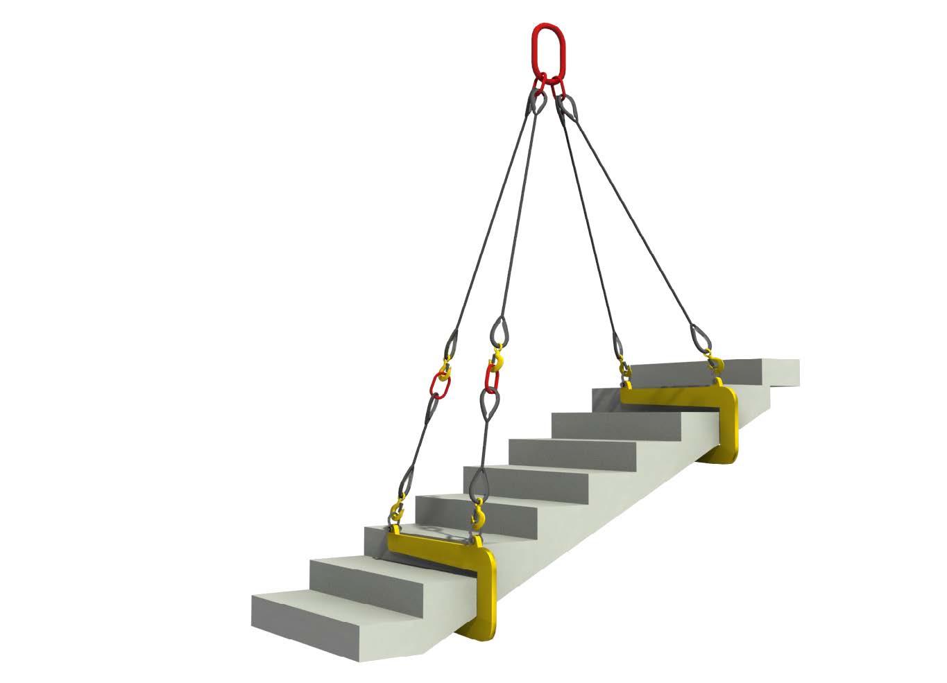 Захваты применяются парами. Для крепления захватов используют строп-паук 4СК с ветвями различной длины или два стропа разной длины. К марше присоединяются более короткие стропы сверху и более длинные стропы снизу. Длины строп подбираются так, чтобы угол установки марша соответствовал проектному углу.